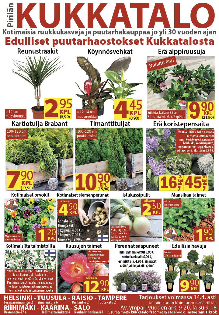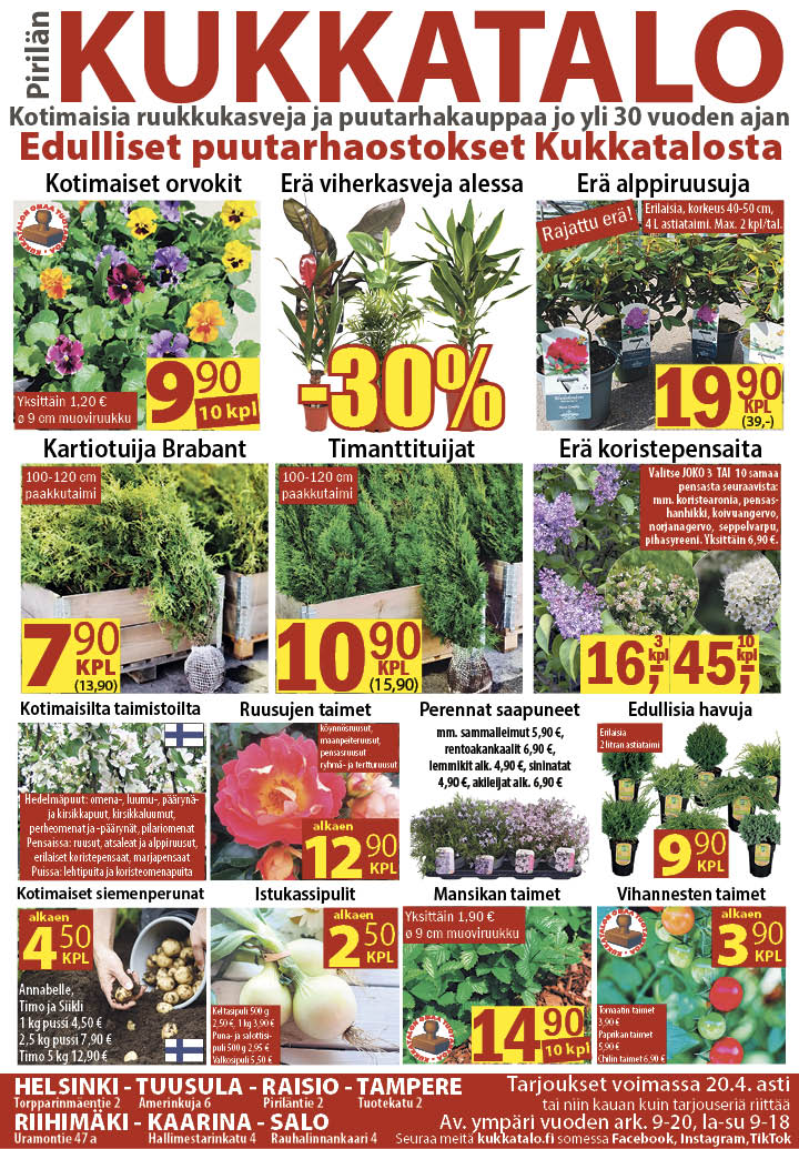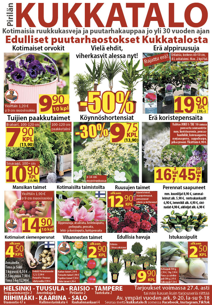 Kotimaiset orvokit ja muut tuotteet puutarhan kevääseen