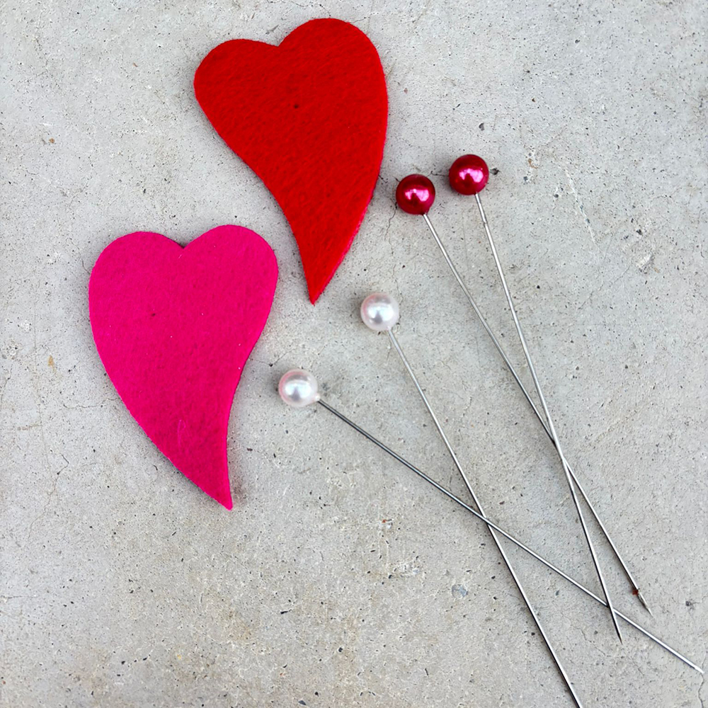 Huopasydämiin saatavana myös koristeneula samassa värissä 0,30 €/kpl