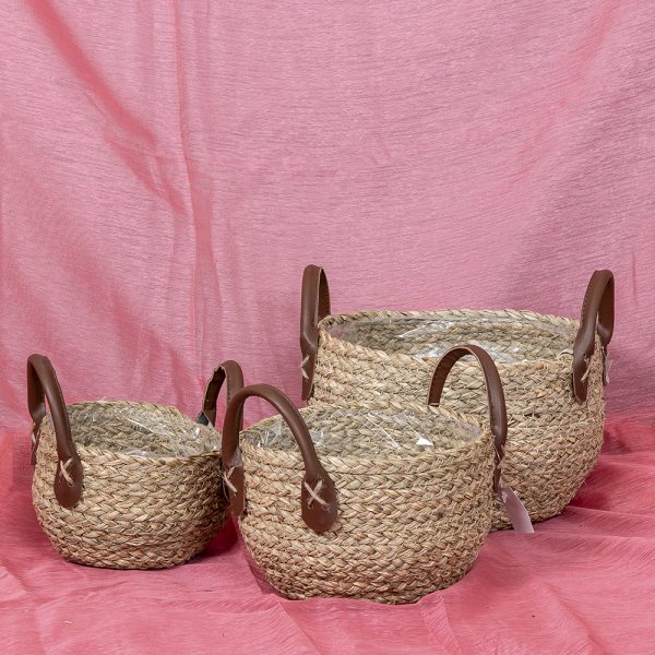 Etusivu Ruukut, korit ja puulaatikot Kori tekonahkakahvoilla ø 15 cm