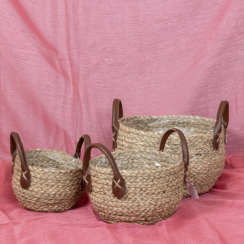 Etusivu Ruukut, korit ja puulaatikot Kori tekonahkakahvoilla ø 19 cm