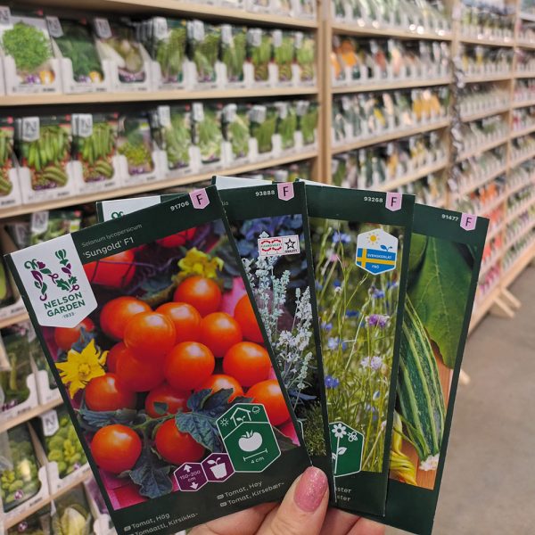 E 5,85 €, mm. punakosmoskukka Candy Stripe, salaattifenkoli Preludio, savoijinkaali Convoy, koristeruoho Pony Tails, silpoherne Kelvedon Wonder, parsakaali Atlantis, punajuuri Moulin Rouge, rikkaporkkana Dara, pullokurpitsa, tähtitörmäkukka Paper Moon, maustebasilika Loki