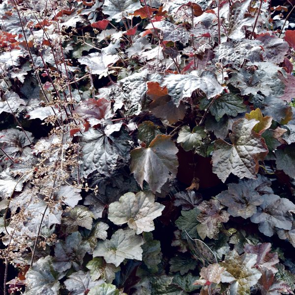 Suuret, tummanpunaiset ja koristeelliset lehdet.