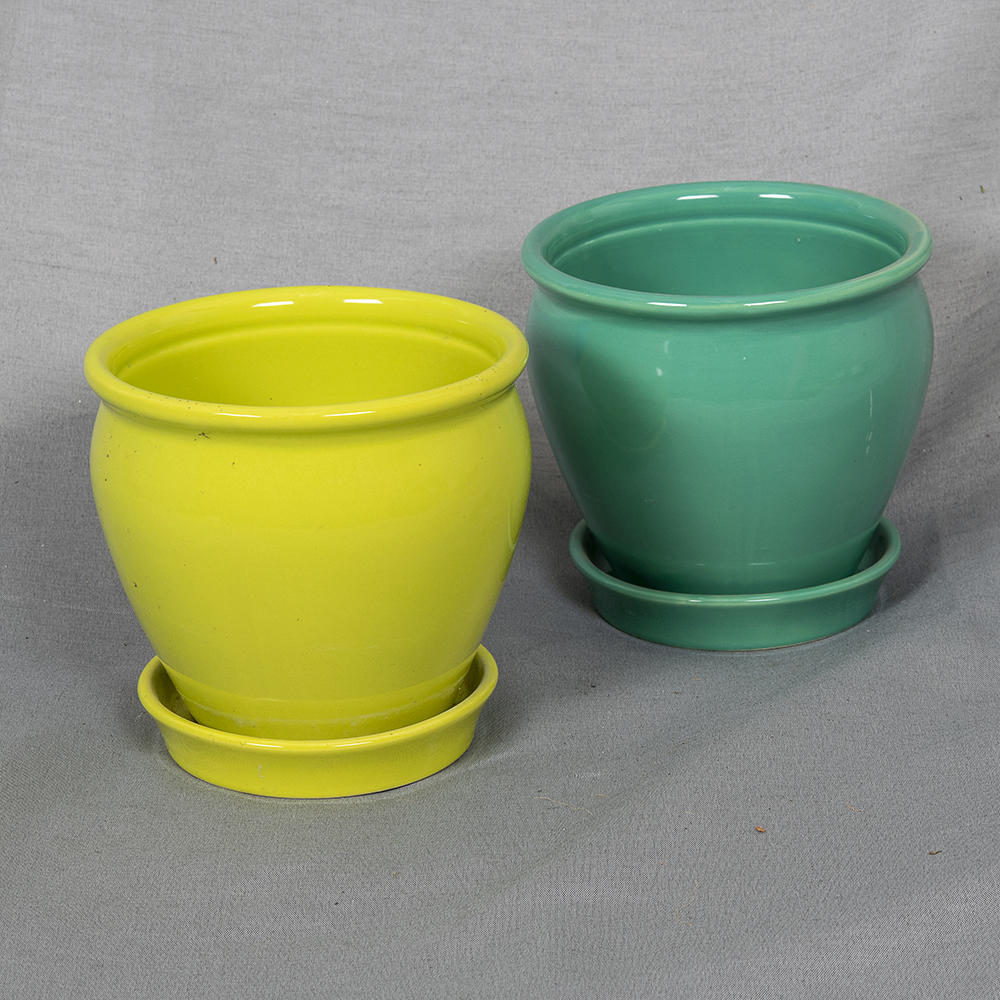 Keraaminen ruukku kiinteällä aluslautasella
