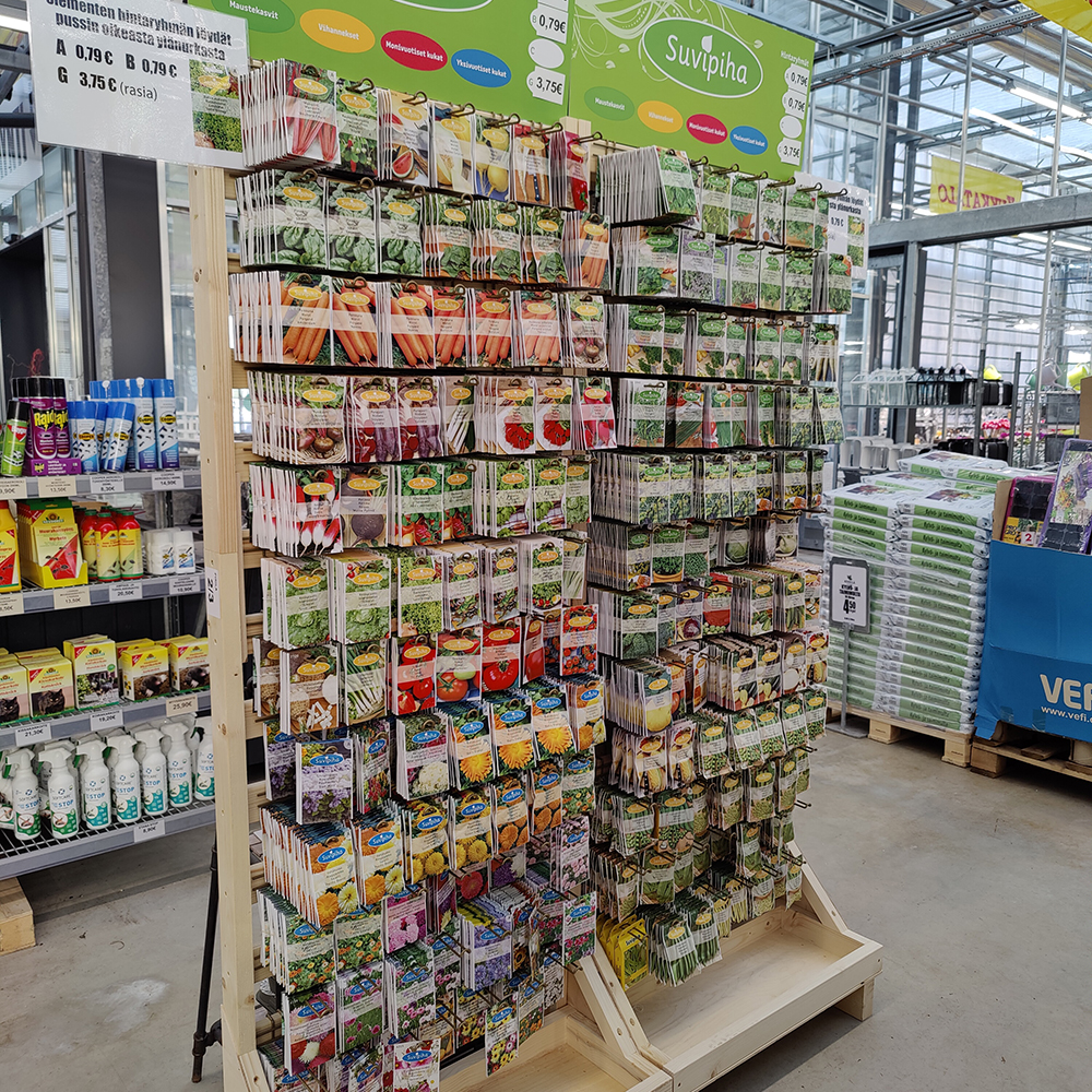 Perusvalikoima kesäkukkien, vihannesten ja yrttien siemeniä. 177 erilaista.