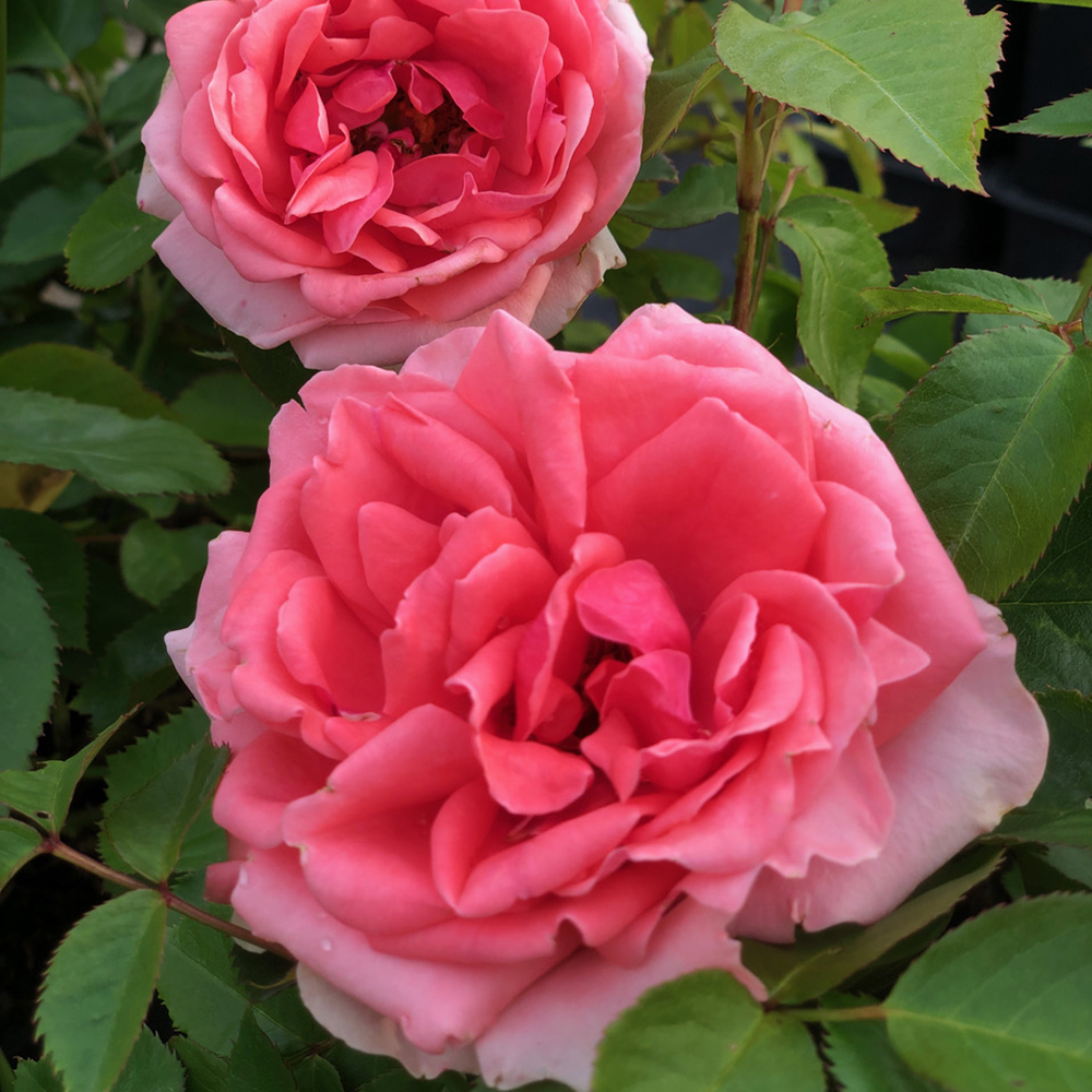 Vaaleanpunaiset, tiheään kerrotut, suuret, kukat. Mieto tuoksu. Kukkii tertuissa koko kasvukauden.